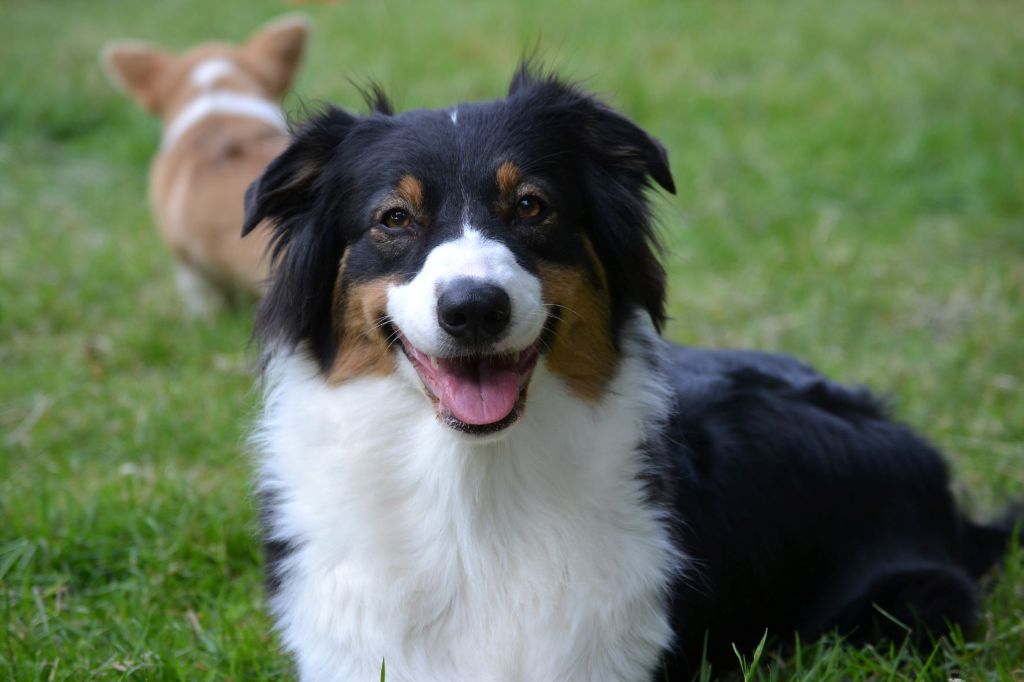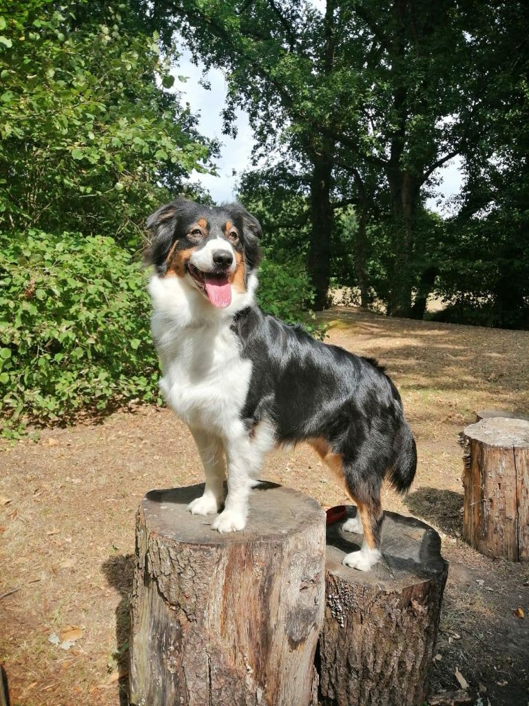 Plume a eut plusieurs portées arc en ciel avec 1 mâle rouge merle,2 mâles bleu merle. Chiots avec un excellent caractère. Idéal pratique sportive.